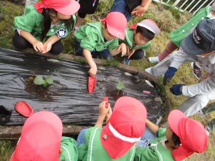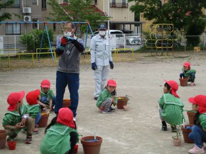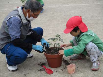 長寿会との野菜の苗植え(5歳児 ぞう組)