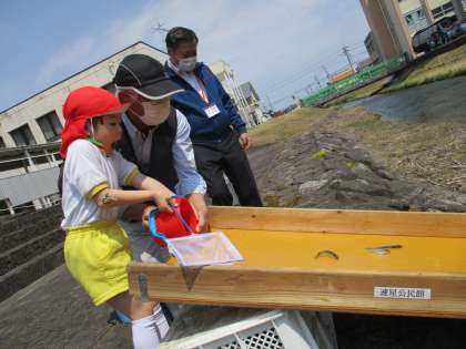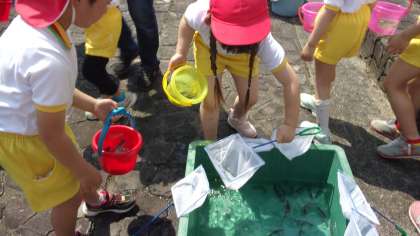 婦中地区こども自然ふれあい体験(稚鮎放流)5歳児 ぞう組