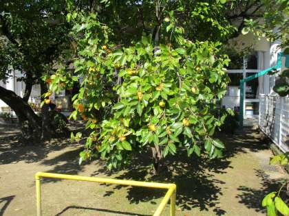 速星幼稚園の園庭には、たくさんの木があります。しかも、実のなる木々が多いのが特徴です!桑、山椒、どんぐり(数種)、柿とそれぞれの季節に実がなり楽しませてくれています。10月になり、緑色だった柿が少しずつオレンジ色になってきました。今年は柿がたくさん実を付けており、子供たちの目線でも見られる高さなので、毎日の変化を楽しんでいます。ぞう組さんから順に持ち帰っていますが美味しくいただけたでしょうか。