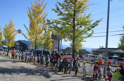 少し長い距離を歩きましたが、帰り道も元気いっぱいでした。一緒に手をつなぎリードしてくれた年長組さんのおかげです。
