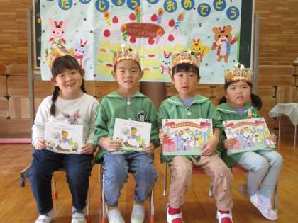 今日は10月生まれの誕生会があり、みんなでお祝いをしました。好きなキャラクター、デザート等をインタビューされ、即答する子、少し考えてから答える子といましたが本当に嬉しそうでした。
