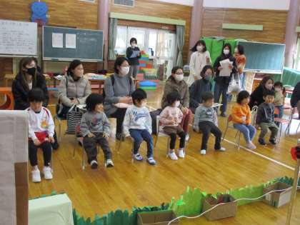 今日は、令和5年度新入園児体験入園がありました。4月から園生活で使う用品注文や、幼稚園教育についての話を保護者の方にさせてもらいました。その間、子供たちは遊戯室での遊びのコーナーで思い思いに遊び、笑顔が見られた友達もいましたよ。