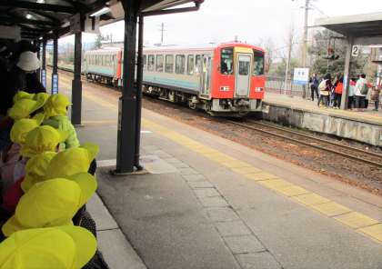 ぞう組さん、いってらっしゃーい 1(りす組) 公開日 2023/02/24 更新日 2023/02/24 今日のできごと 2月24日(金) 今日は、ぞう組さんの「お別れ遠足」だったので、速星駅まで見送りに行ってきました。 速星駅の駅員さんのご厚意で、ホームに入らせてもらいぞう組さんの対面側で電車が来るのを待ちました。貨物の車両が何度か通りましたが、興味深く見ていた子供たちです。 「この駅から電車に乗ったことあるよ」「『ひだ号』を見にきたよ」と話す子も多かったです。