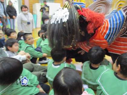 獅子舞にあやかって、今年一年、大きなケガや事故、病気などせず、みんなが健やかに園生活が送れますように!