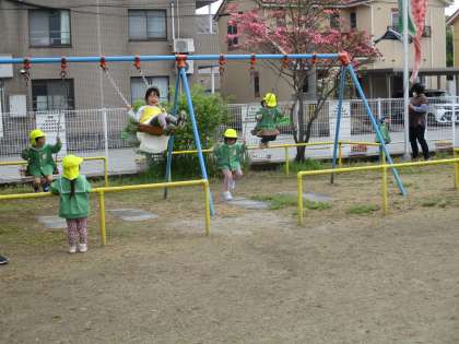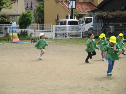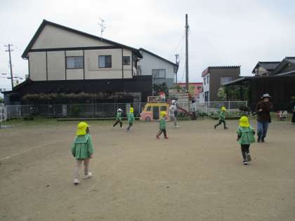 戸外で遊ぼう!(4歳児) 公開日 2023/04/19 更新日 2023/04/19 今日のできごと 4月19日(水) 園庭では、ブランコや三輪車などそれぞれ好きな遊びを見付けて遊んでいる子供たち。今日は、体を動かして遊ぶ楽しさを感じてほしいと思い、みんなで鬼ごっこをしました。鬼にタッチされないように周りをよく見たり、力いっぱいに走ったりしています。集団遊びを通して、友達と一緒に遊ぶ楽しさを感じられるようにしていきたいと思います。