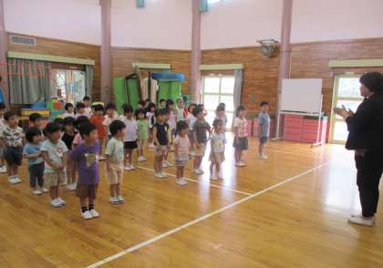 今日は1学期の終業式でした。園長先生から「はやほし」の頭文字から約束を話されました。