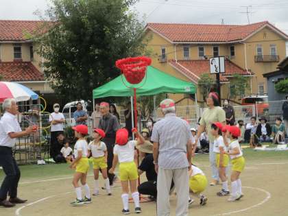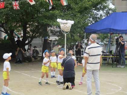 運動会楽しかったね! 2(ぞう組) 公開日 2023/09/23 更新日 2023/09/23 今日のできごと 来賓、シニアサポーターの方々と一緒にした「玉入れ」では、白団が勝ちました。最後の大きな鈴型の玉入れでは、いつもすぐ入っていた赤団だったのに今日はなかなか入らず、何度も投げて挑戦しましたね。 連日白熱してきた「綱引き」では、赤団、白団ともに1勝ずつしました。綱がどちら側にも行ったり来たりしており、どちらも真剣そのものでした。