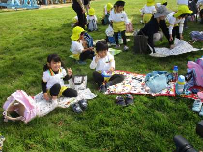 遠足前から「自分のリュックや水筒は重いけど、持てるかな」と話していると「大丈夫、自分で持つ」と宣言するくらい公園内も自分のリュックをしっかり担いで歩くことができました。