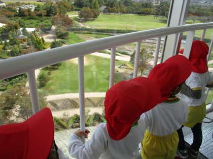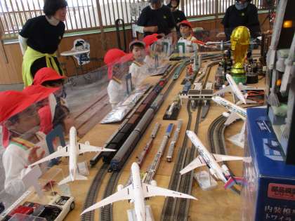 お腹もすいてきたのでお弁当を食べました。おうちの方の手作り弁当に「おいしいね」と嬉しそうに食べている子供たちでした。午後からは展望塔へ上り、公園内を眺めたり、新幹線のジオラマを見たり、モニュメントのドラえもんやドラミちゃんに握手をしたりと楽しい時間を過ごしました。