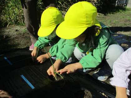玉ねぎの苗植え(4歳児)