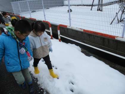 今日はクリスマス。朝、登園した子からサンタクロースが来た話題やプレゼントの話で盛り上がりました。午前中、みんなが書いた年賀状を出しに、郵便局まで散歩に行きました。途中、雪の上に動物の足跡を見つけると「トナカイの足跡かな?」「サンタさんの足跡はどれだろう?」とウキウキで話をする子供たちでした。自分の年賀状と、クラスの友達の年賀状をポストに投函しました。1月1日の元旦には手作りの年賀状が、みんなのお家に届きますよ。楽しみですね!