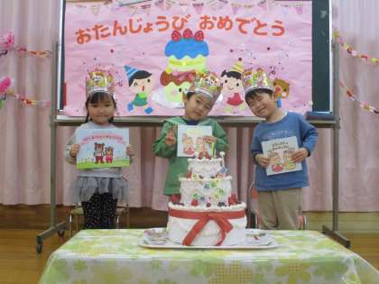 今日は3月生まれの友達の誕生会がありました。待ちに待った誕生会!先生がお家の方のメッセージを読み上げるのを聞いて、笑顔がいっぱいで嬉しそうでした。質問されたことに対し、自分の好きなものをはっきり答えていて素敵でした。