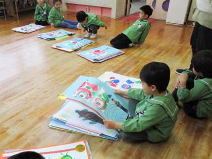 1年間の作品の整理をしました。春の頃の作品を見て「わ〜懐かしい!」「名前の字、まだ上手く書けなかったんだ」と自分の作品を見てしみじみ話す子供たちでした。