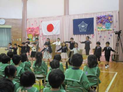 退場時には、一人ずつ将来の夢を話し、うさぎ組さんから花束のプレゼントをもらい退場していきました。夢がどんどん具体的になっていく友達もいて、先生たちは今日はどんなことを話すのかな?と毎日の変化を聞くのが楽しみでした。