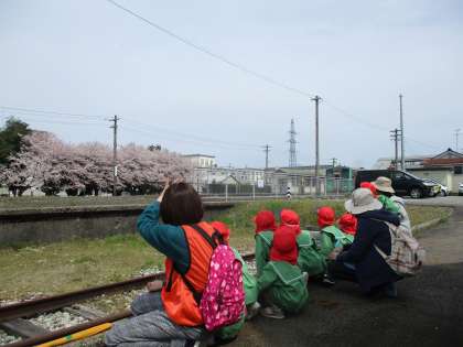今日は速星駅まで散歩に行ってきました。道中、桜やツクシ、タンポポ、チョウチョウ等たくさんの発見がありました。速星駅では電車が走る様子を見て大喜びの子どもたち。たくさんの出会いがあり、嬉しい一時でした。