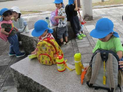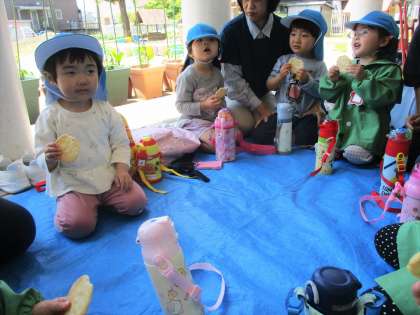 遠足ごっこ(3歳児) 公開日 2024/05/16 更新日 2024/05/16 今日のできごと 来週の遠足に向けて椅子を並べてバスに見立てたり、手遊びをしたりして期待感を高めている子供たちです。また、リュックを担いで歩いたり敷物に座っておやつを食べたりする中で、リュックや水筒の扱いにも慣れていってほしいと思っています。