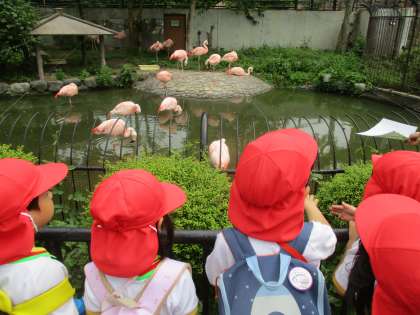 園内に入るとフラミンゴが出迎えてくれました。キリンやシマウマ、トラ等、たくさんの動物を見ることができました。ふれあいコーナーではドキドキしながら触ったり、カメの餌づくりの様子を見たりしました。芝生広場でお弁当を食べ、ほっと一息。愛情たっぷりのお弁当の準備、ありがとうございました。また、ご家庭で、話を聞いてみてくださいね。