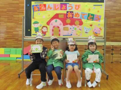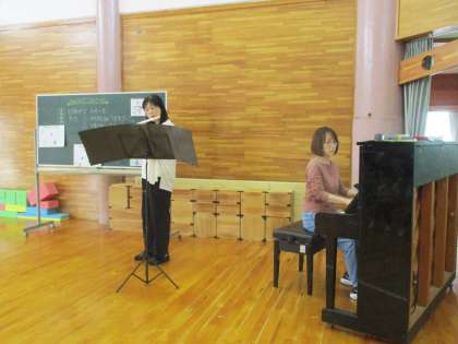 5月誕生会 公開日 2024/05/31 更新日 2024/05/31 今日のできごと 5月生まれの友達をお祝いしました。お楽しみコーナーは「みんなのコンサート♪」でした。先生たちのピアノやフルートの演奏を聞いて、素敵な音色を楽しみました。知っている曲は一緒に歌う友達もいましたよ。