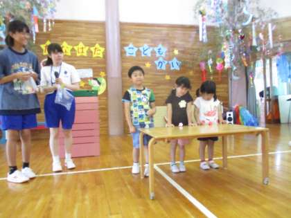 14歳の挑戦 公開日 2024/07/10 更新日 2024/07/10 今日のできごと 7月1日(月)〜5日(金) 14歳の挑戦で6名の中学生が幼稚園に職業体験に来ていました。子どもたちと触れ合い、楽しく一緒に遊びました。5日の日には中学生の特技や中学生の考えたゲームをしました。「あっという間でもうお別れなの」と子どもたちは寂しそうな様子も見られました。「一緒に遊んで楽しかったです」とお互いにお礼を伝え合いました。