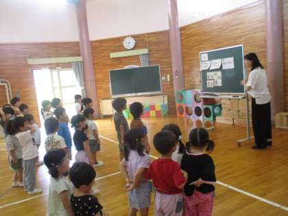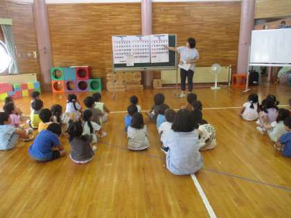 1学期終業式をしました。園長先生から「夏休みを楽しく元気に過ごすための3つの約束」を聞きました。子どもたちも明日からの夏休みを楽しみにしている様子と「しばらく幼稚園で遊べない」とさみしそうな様子が見られました。