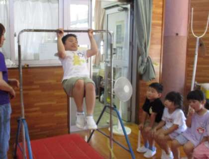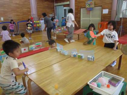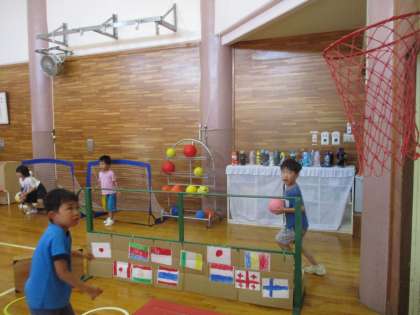 はやほしオリンピック(5歳児) 公開日 2024/09/10 更新日 2024/09/10 今日のできごと 今年はオリンピックが開催され、子どもたちもいろいろな競技を見たり聞いたりして興味をもっていました。自分たちでもできる競技はないかと考え「はやほしオリンピック」を作って遊んでいます。子どもたちは「今日はシュートをいっぱい決める」「ゴールキーパーで友達のボールを止めたい」「鉄棒頑張るぞ」とめあてをもって取り組んでいます。日に日に記録が伸びていくことや友達と競うことを楽しんでいます。