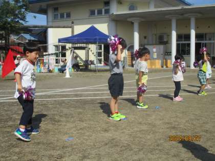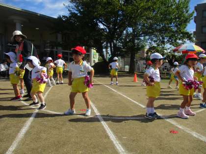 明日は運動会!3歳児にとって「運動会ってなに?」と分からないことが多かったと思いますが、リズムを踊ったり、かけっこをしたり、年上の友達の競技や演技を見たりしている中で「運動会って楽しい!」という気持ちを感じることができました。ワクワクしている子が多く帰りの会の「エイエイオー!」もとても大きな声でした。今日は、ゆっくり休んで明日は元気いっぱいで登園するのを待っていますね!