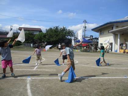 明日は心待ちにしていた運動会です。「あと〇回寝たら、運動会だね」とわくわくしている子どもたち。小旗のスマイルやチアダンス等、かっこいいところを見てもらいたいと取り組み、今日は「腕を伸ばす」「元気な声で」「お引越し」など頑張りたいポイントを発揮できたと喜んでいました。明日は「みんなで頑張ろう!おー」と張り切っています。温かい声援、お願いします。お待ちしています。