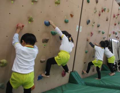 午後は、室内でボルダリングや竹の手作り遊具で遊びました。何よりもバスが嬉しかった友達はバスをじっくり観察していました♪