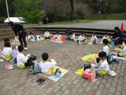 竹林を散策していると、竹ジャングルを発見し「やってみたい」「やってみよう」ということで、自分たちの背丈より高い竹のはしご渡りに挑戦しました。「高くて怖いけどゴールまで頑張る」とやり切った子どもたちでした。
