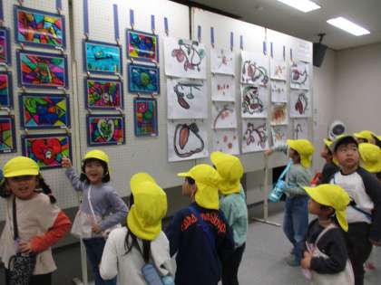 速星校区文化祭作品展を見に行ってきました 公開日 2024/10/31 更新日 2024/10/31 今日のできごと 10月31日(木) 速星公民館に子どもたちの作品が今日から2日(土)まで展示されています。 今日は、みんなで作品を見に行ってきました。自分の作品を見つけると、「ぼくのがあったよ」と友達と一緒に教え合う姿が見られ、一緒に喜んでいました。また、小学生や他にも出展されている作品を見て、「すごい、写真みたいけど絵なんだ」とびっくりする様子も見られんした。