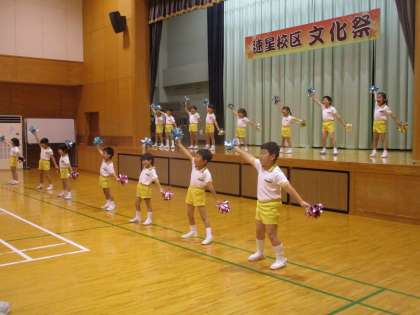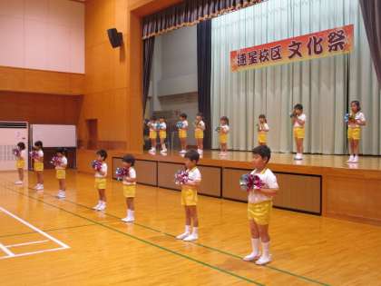 速星校区文化祭ステージ発表委(5歳児) 公開日 2024/11/02 更新日 2024/11/02 今日のできごと 11月2日(土) 速星校区文化祭にぞう組がダンスと歌を披露してきました。大きな舞台に少し緊張気味の子どもたちでしたが、踊りだすと笑顔で元気よく踊ることができました。たくさんのお客さんから拍手をもらいうれしそうな子どもたちでした。