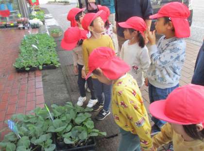 玉ねぎの苗を買いに行ってきました!(4歳児) 公開日 2024/11/14 更新日 2024/11/14 今日のできごと 11月14日(木) 今日は玉ねぎの苗を買いに行ってきました。「玉ねぎってどんな苗なんだろう?」と図鑑を見て話し、想像しながら出掛けました。実際に見ると「根っこみたい」と驚いていました。一つの苗から一つの玉ねぎができることを教えてもらい、植える日を楽しみにしています。