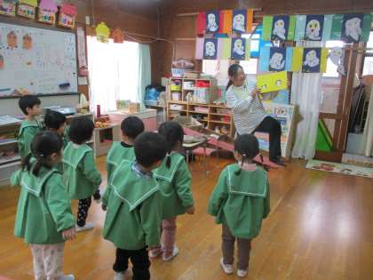 今月のPTA読み聞かせでは、ペンギンの真似をして体操する絵本もあり、みんなで真似をして楽しみました。
