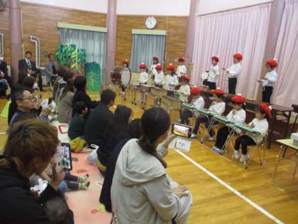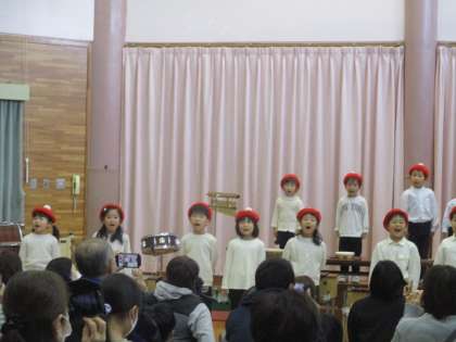 生活発表会(年長児)パート1 公開日 2024/11/23 更新日 2024/11/23 今日のできごと 11月23日(土) 生活発表会を行いました。子どもたちは発表会を楽しみにしていたこともあり「本番だね、ドキドキするけど頑張ろう」とやる気に満ちていました。 プログラム1番は歌と合奏で、「きれいな声で歌おう・演奏しよう」と心をひとつに頑張りました。