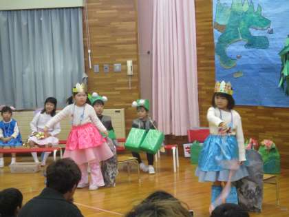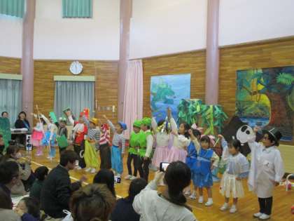 年長児にとっては幼稚園最後の発表会になりました。子どもたちは歌・合奏・劇で表現する楽しさや見てもらう嬉しさを感じられたのではないかと思います。