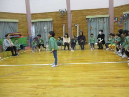 昨日のクリスマス会食で分かれたグループのマークをつかって「サンタさん」「ベル」「メリークリスマス」などの合図に合わせて空いている椅子を探す『クリスマスバスケット』もして遊びました。「動かなきゃ」と空いている椅子を一生懸命探す子どもたちでした。幼稚園のみんなで楽しむことができました。