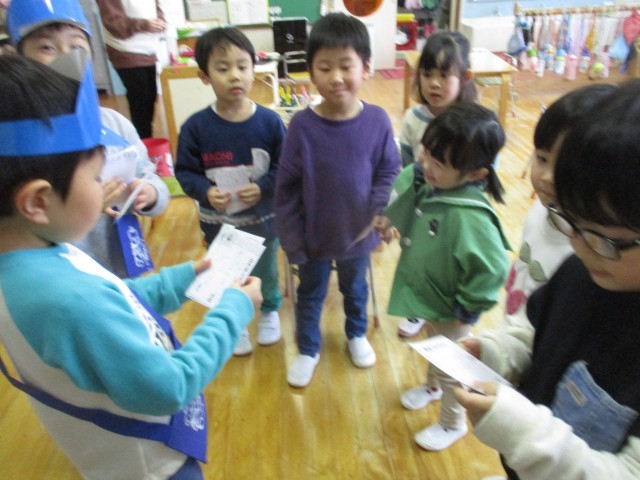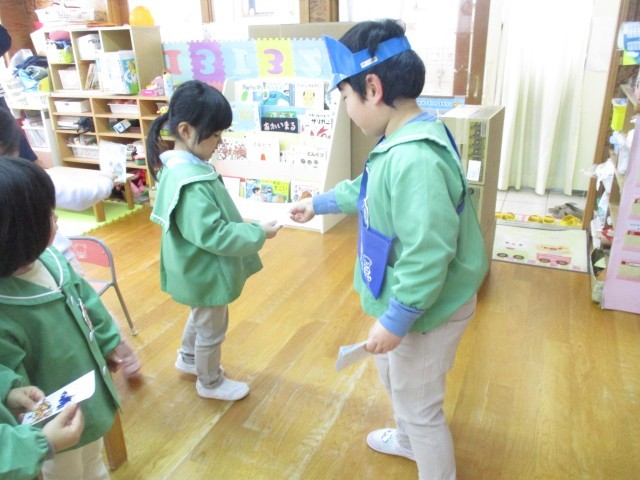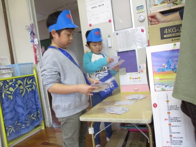 郵便ごっこ始まりました 公開日 2025/01/15 更新日 2025/01/15 今日のできごと 1月15日(水) 郵便ごっこが昨日より始まりました。 「誰に書こうかな」それぞれの部屋でハガキを書き、ポストに入れると年長組の郵便屋さんが届けてくれます。「郵便配達に来ました」と部屋へ入ると「今日は届くかな、楽しみ」と心待ちにしている様子が見られます。もらったハガキをじっくり読み「返事を書こう」と取り組んでいます。友達とのやり取りを楽しんでほしいと思います。