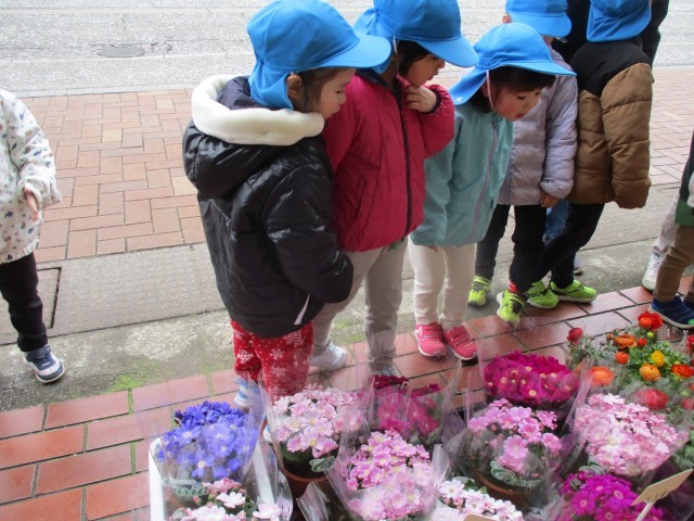 日ごと暖かくなってきました。今日は、速星駅前のお店まで「ジャガイモの種芋」を買いに行ってきました。お店では春の花がたくさん並んでいて「このお花かわいい」「この紫、私の好きな色!」と店頭に並んだ花を見ながら会話が弾みました。また、ジャガイモの種芋を見て「え?これってジャガイモだよ~」「ジャガイモを植えるの?」「くぼんだところって芽だよね?」と、思い思いに話す子どもたちでした。帰り道には、可愛いスズメも発見しました(どこにいるかわかりますか?)