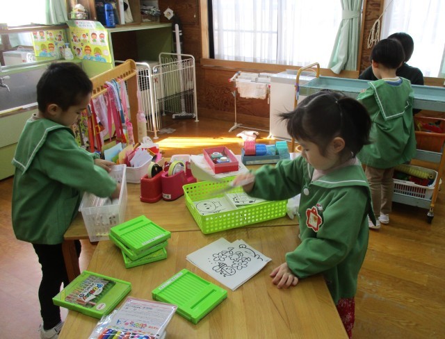 4月からはうさぎ組になることも楽しみにしている子どもたちです。今週は、自分の道具箱の中を片付けたり、保育室を掃除したりしました。12月の大掃除を覚えていて椅子の裏側や足を拭いたり、本棚から本を出して雑巾で拭いたりしました。きれいになると「ピカピカだ~!」と部屋を見回して嬉しそうな子どもたちでした。新しいりす組さんに気持ちよく過ごしてもらえそうですね。