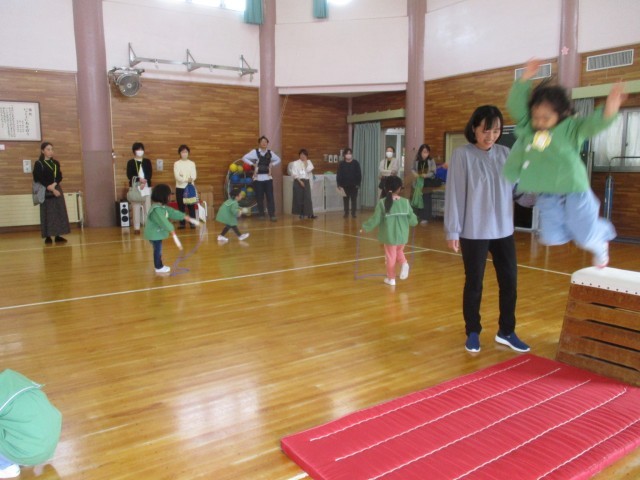今日は保育参観がありました。友達や教師とやりとりを楽しみながら遊ぶ姿や縄跳び、リズムなど普段楽しんでいる活動を見ていただきました。