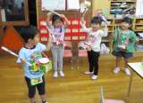 フラッグや小旗の演技に挑戦しています(4歳児 うさぎ組)