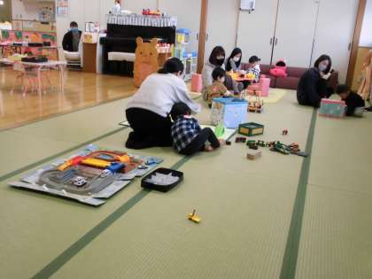 今日は久しぶりの親子サークルだったためか、いちごクラブに登録しているお友達が全員集まって、ママと一緒にゆったりと楽しい時間を過ごしました。回を重ねるごとに保育室や指導員に慣れていく子供たち。一人一人の成長に嬉しさを感じています。