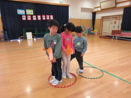 今日は年長組でお楽しみ会を開きました。ほし組、にじ組でくじ引きをし、11グループに分かれました。まずはスタンプラリー、園内にいる先生たちを見つけてクイズに挑戦!みんなで力を合わせて頑張りました。