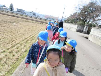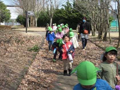 お天気が良かったので、南公園までお散歩にいきました。築山の上から転がったり、ケイドロやバナナ鬼を楽しんだりしました。春の陽気を感じ、気持ちよさそうな子供たちでした。