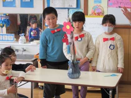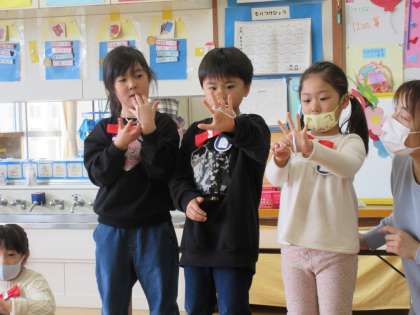 みんなで何をしたいか相談し、準備してきたお別れパーティー。にじ組さんにも来てもらい、みんなで楽しみました。まずはマジックショーをしました。