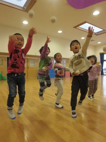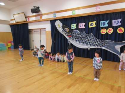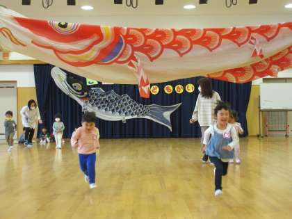 年中組は『こいのぼり玉入れ』、年少組は『こいのぼりかけっこ』を楽しみました。
