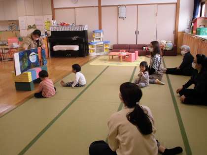 5月18日(火)メロンサークル・その2 公開日 2021/05/18 更新日 2021/05/18 子育て支援 お友達の名前を呼んで点呼をとると、みんな嬉しそうにアンパンマンにタッチしていました。また親子で自己紹介をしてもらったり、みんなで手遊びや大型絵本を見たりして楽しみました。帰りの時間になっても「もっと遊びたかった!」と、サークルがとても楽しかったようです。来週もみんなで遊ぼうね。