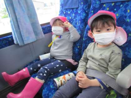 初めて大型バスに乗って、ファミリーパークに行ってきました。「きりん、大きい」「トラ、かっこいい」と言いながら、夢中で動物を見てきましたよ。
