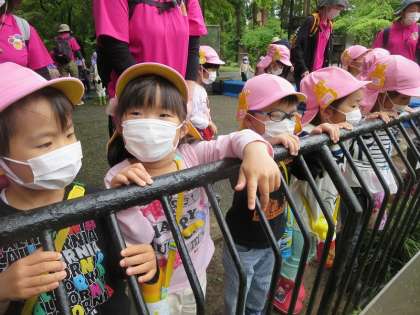 ファミリーパークへ行ってきました1 公開日 2021/05/18 更新日 2021/05/18 年中もも・すみれ組 昨日のみんなでてるてるぼうずをつくったこともあってか、雨に会わずに遠足に行ってくることができました。大型バスに大喜びの年中さんでした。たくさんの動物に興味津々で、楽しい遠足になりました。