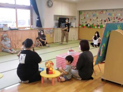 7月6日(火)メロンサークル・その1 公開日 2021/07/06 更新日 2021/07/06 子育て支援 今日は、7月生まれのお友達の誕生会をしました。そして明日は七夕、お星さまのお話をパネルシアターを見ながら聞きました。今年の2歳児は、お話を聞くことが好きなお友達が多いですね。